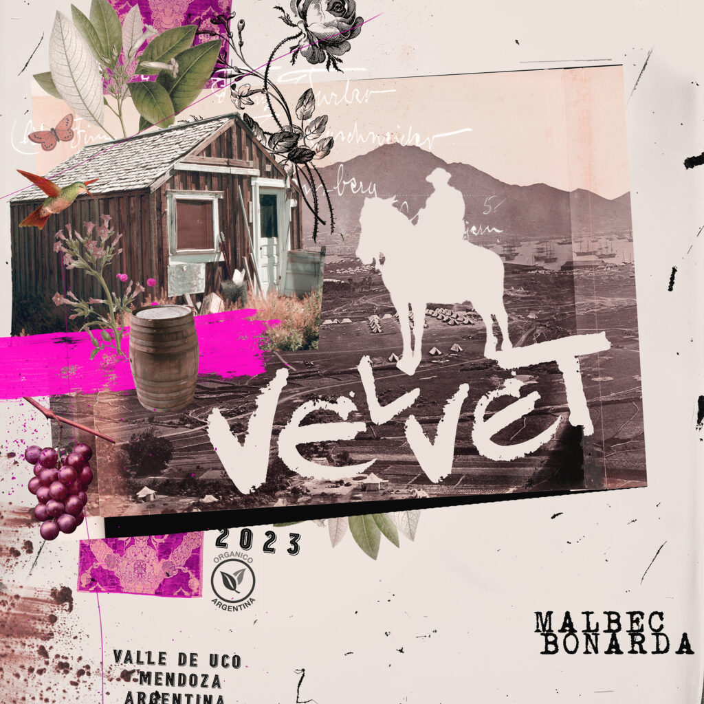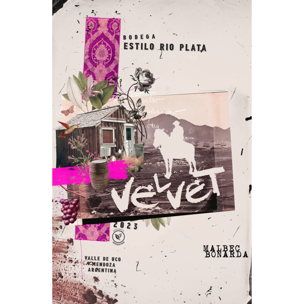 Diseño de etiqueta para botella de vino. Técnica de collage digital.
